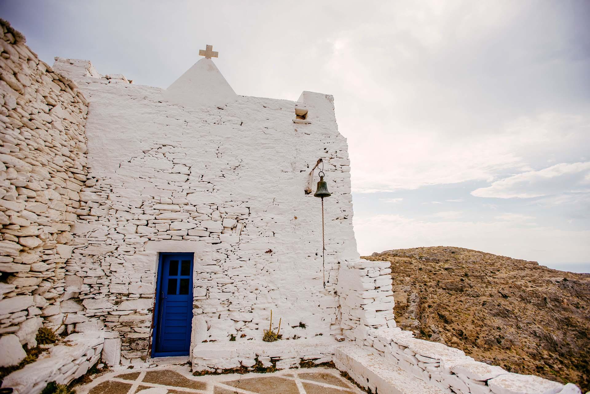 Our hiking experience begins above the settlement of Loutra in Kythnos island, giving a magnificent view of the eastern Cyclades. Then we continue uphill following a dirt road until we reach the junction that goes either north to the church of St. George or west to the Castle of Oria.